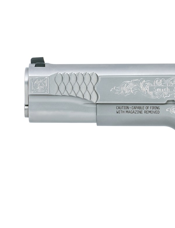 PISTOLET SMITH & WESSON SW 1911 GRAVEE CAL 45ACP // + BOITE BOIS //Le Smith & Wesson 1911 Engraved en calibre .45 ACP est un pistolet simple action alliant...